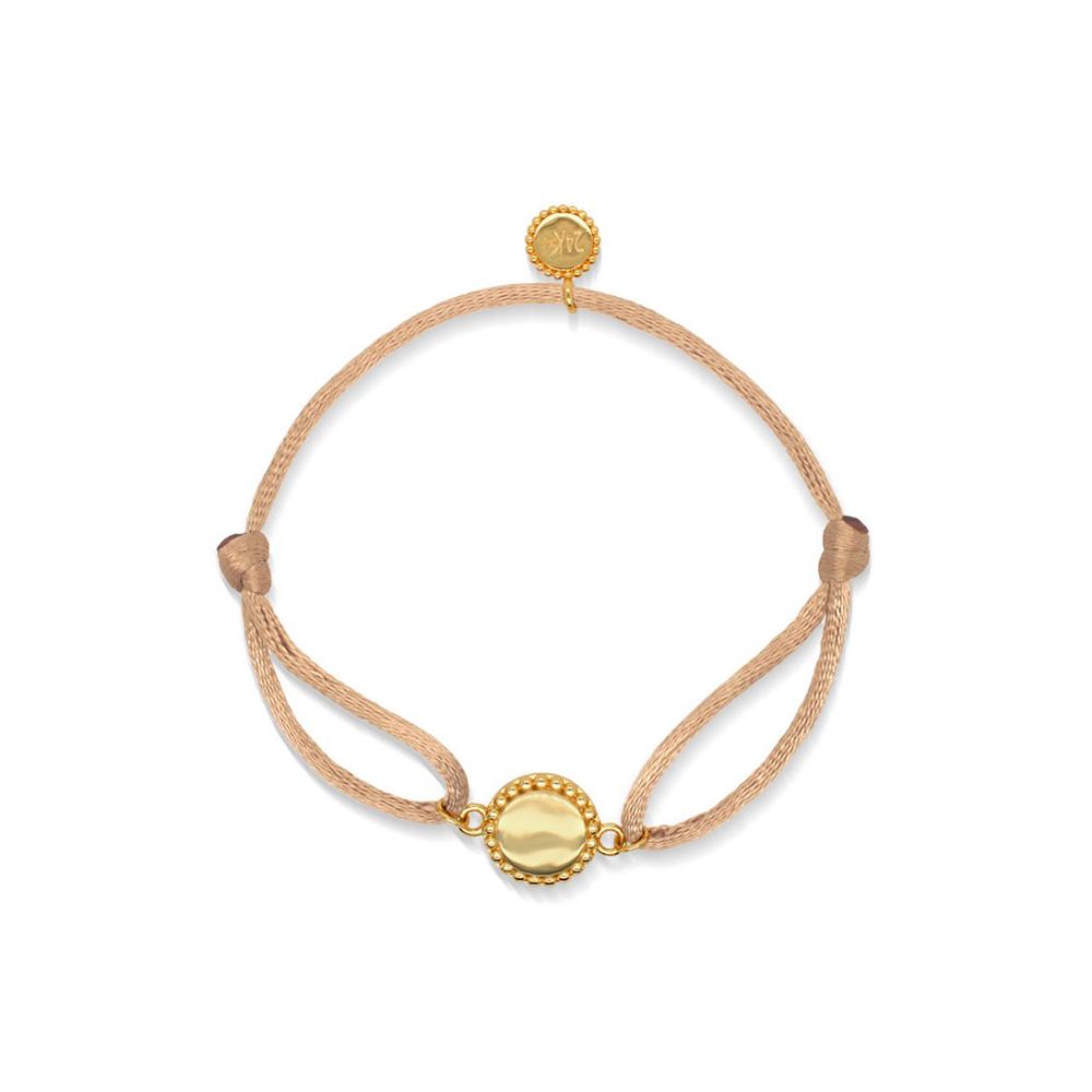 24Kae Armband met beige zijde koord en muntje 925 Sterling zilver geelgoud verguld 22420Y Yellow