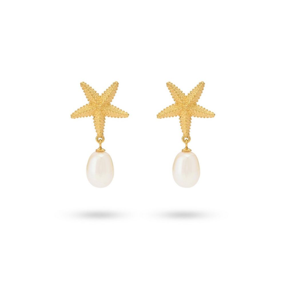 24Kae Earring Starfish And Sweetwater Pearl 42488Y Gold colored