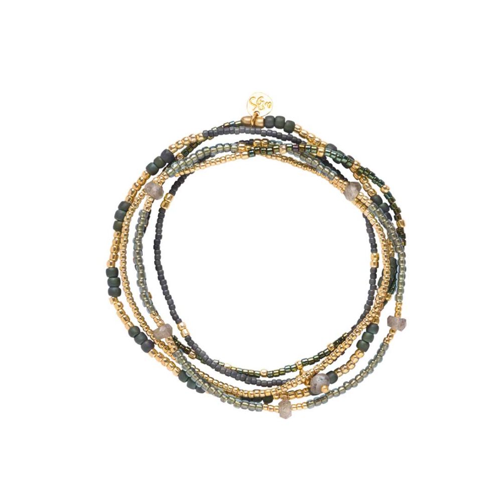 voor dames. Met zijn goudkleurige hardware en unieke combinatie van edelsteen, messing en glas, straalt deze armband elegantie en stijl uit. Het is een product van het bekende merkWat deze armband echt bijzonder maakt, is de gebruikte steen: labradoriet. Labradoriet staat bekend om zijn prachtige kleurenspel en wordt vaak geassocieerd met mystiek en bescherming. De armband heeft geen sluiting, waardoor hij gemakkelijk om te doen is en comfortabel om te dragen. Met de Intensity Labradorite Bracelet voeg je een vleugje magie toe aan je dagelijkse look.