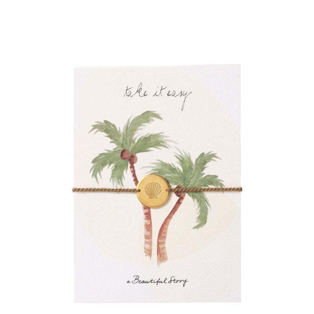 De Jewelry Postcard Palm Trees armband is gemaakt van hoogwaardig papier en heeft een goudkleurige hardware. Het merk, A Beautiful Story, staat bekend om zijn kwaliteit en vakmanschap. De kleur van deze armband is goud, wat zorgt voor een elegante en luxe uitstraling.