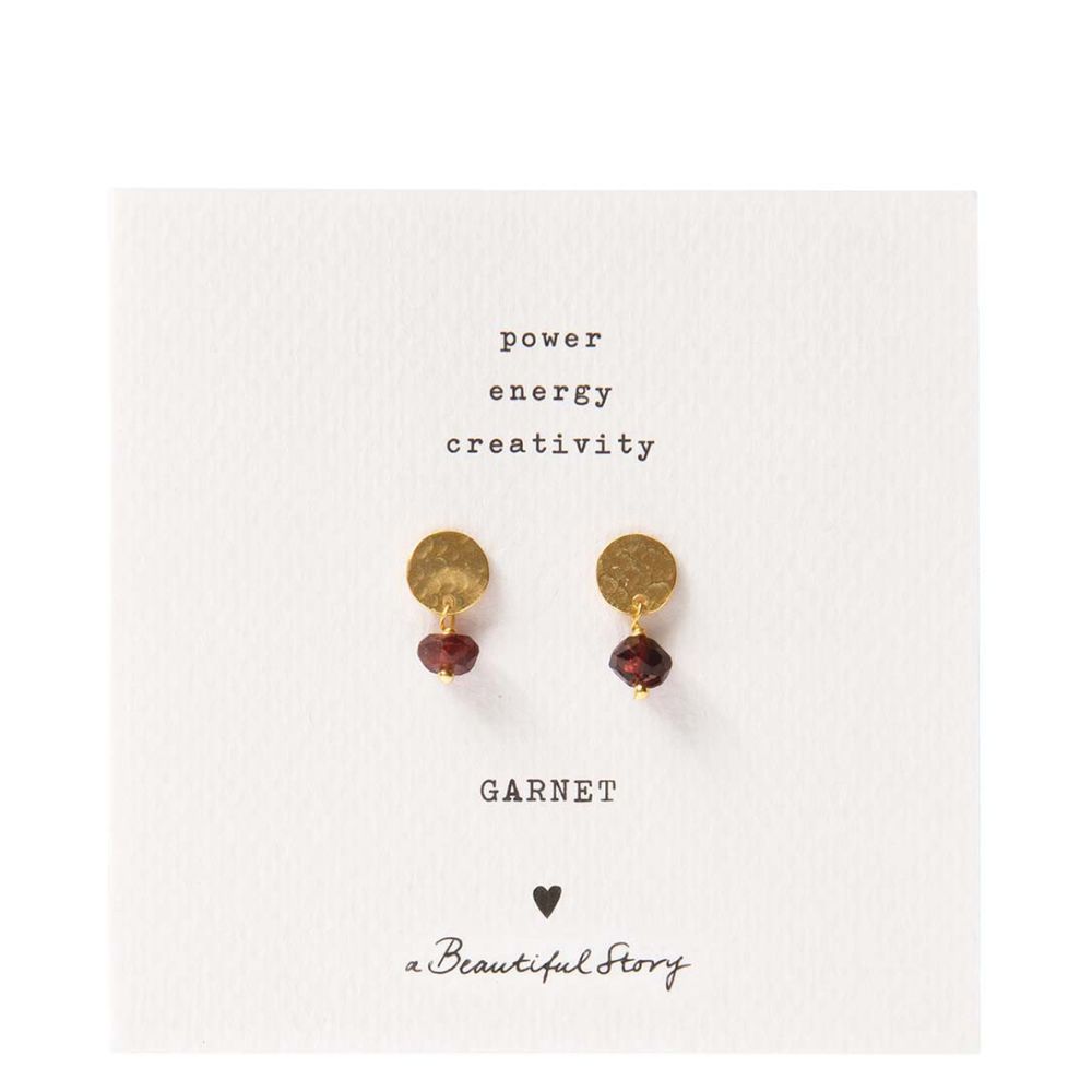 A Beautiful Story Mini Coin Garnet Gold Plated Earrings Goudkleurig