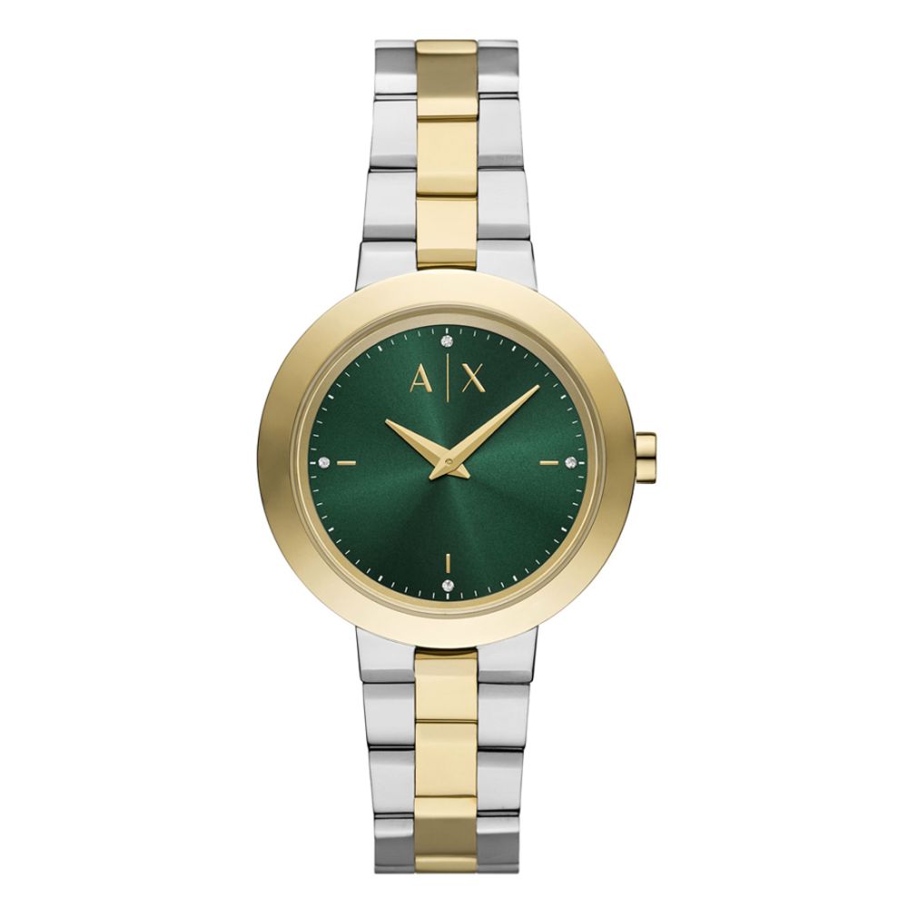 voor dames die stijl en functionaliteit willen combineren. Dit prachtige stuk vanDe AX5176 is vervaardigd uit hoogwaardig roestvrij staal, wat niet alleen zorgt voor een luxe uitstraling, maar ook voor duurzaamheid. De 2-tone kleurstelling en de groene wijzerplaat geven dit horloge een unieke flair die je niet wilt missen. Of je nu een dagje uit gaat of een avondje uit, dit horloge is de ideale metgezel.
