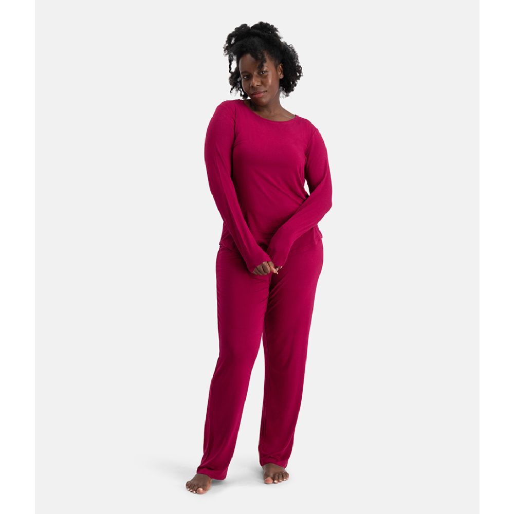 Bamboo Basics Ladies Knitted Pyjama Long Sleeve Set Burgundy