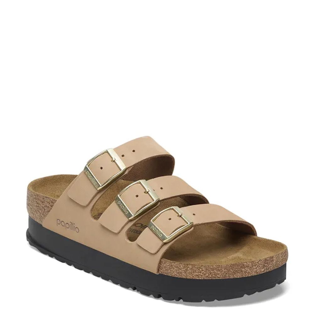 BIRKENSTOCK Florida III Papillio Flex Platform Nubuk Leather Narrow Sandcastle