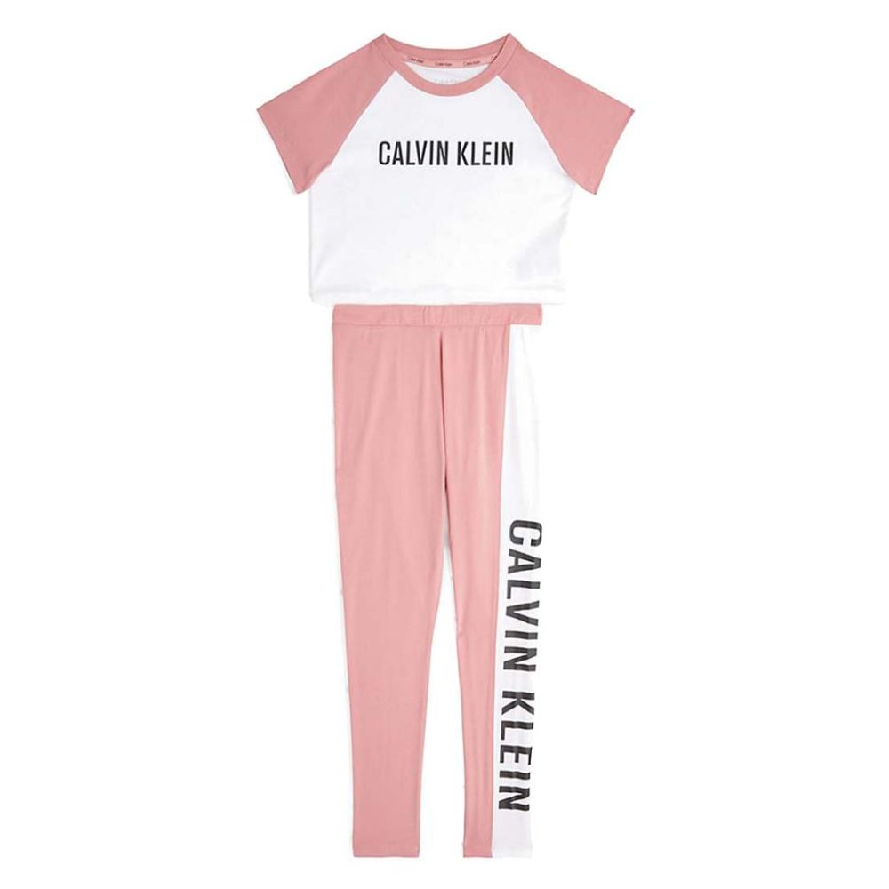 Calvin Klein Girls Knit Pj Set Short Sleeve And Legging Pinkmocha W White