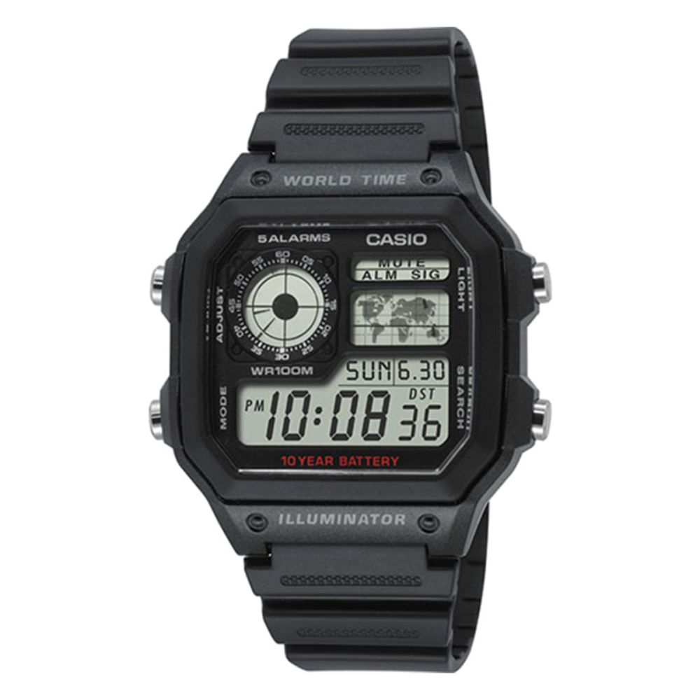 De Casio AE-1200WH-1AVEF is gemaakt van hoogwaardig kunststof en draagt het merk Casio met trots. De zwarte kleurnaam en productcode AE-1200WH-1AVEF geven dit horloge een unieke identiteit binnen de Casio Collection serie. Met een vierkante vorm en een gespsluiting is dit horloge niet alleen functioneel, maar ook modieus.