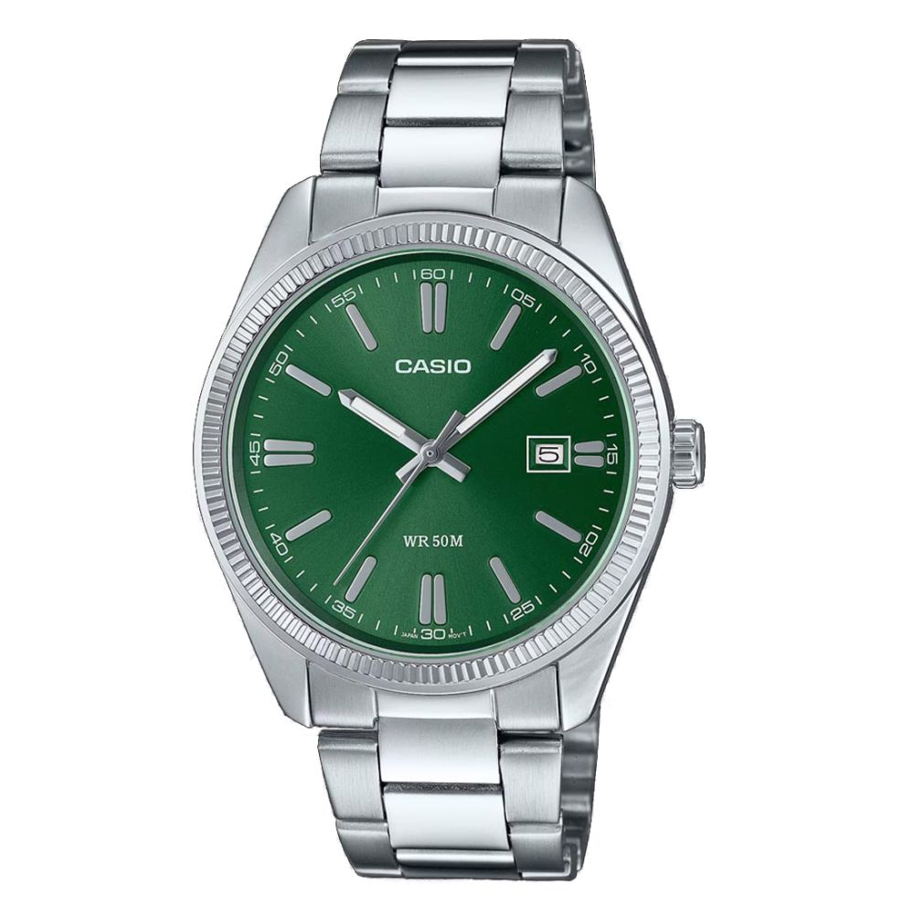 De groene wijzerplaat geeft dit horloge een unieke en opvallende uitstraling. Het Casio logo op de wijzerplaat en de zilveren kleur van het horloge geven het een tijdloze en klassieke look.