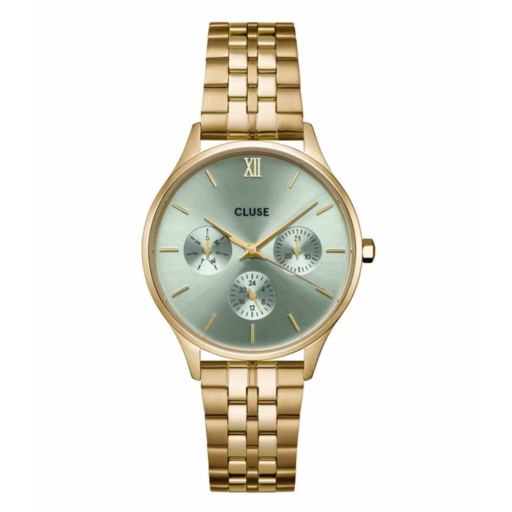CLUSE Minuit Multifunction Watch Steel Sage Green Gold Colored