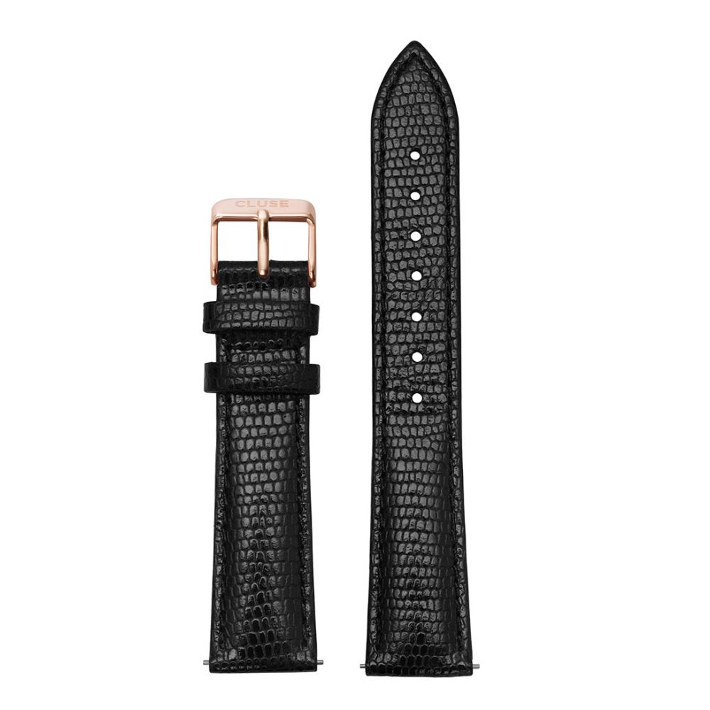 CLUSE Strap 18 mm Leather Rose Gold Plated black lizard