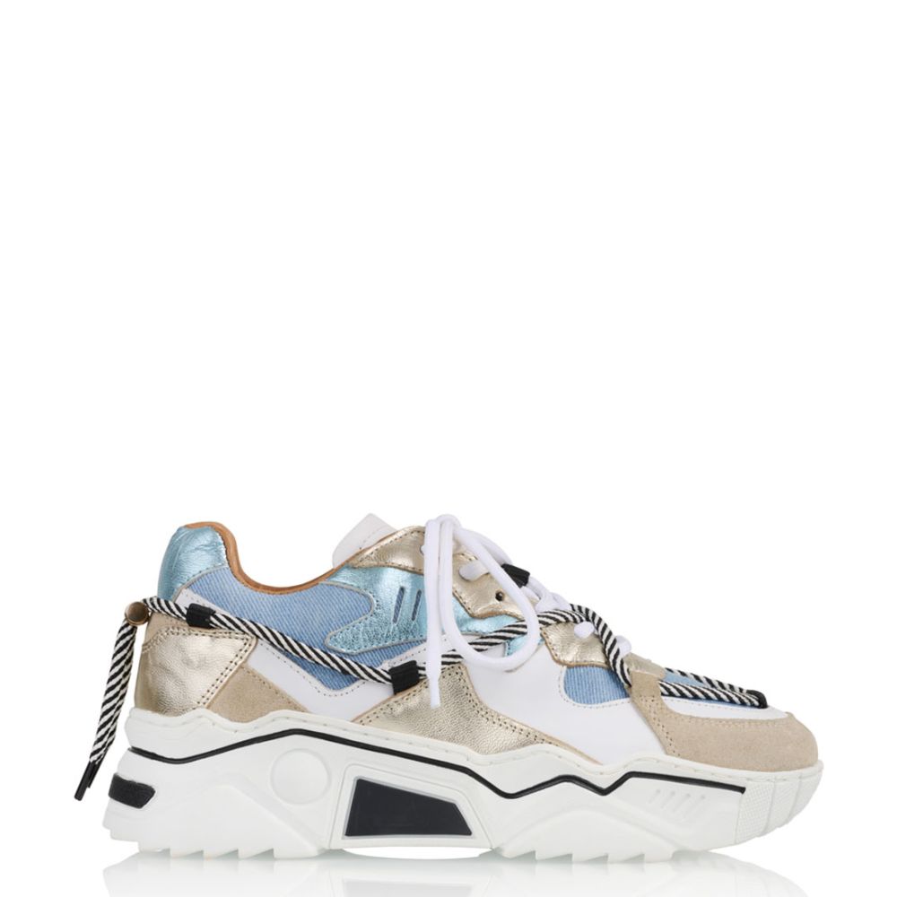 Ben je op zoek naar een paar stoere sneakers die perfect passen bij jouw zomerse outfits? Dan zijn de Jupiter Denim Lage Sneakers van DWRS echt iets voor jou! Deze sneakers zijn speciaal ontworpen voor dames en zijn gemaakt van een combinatie van denim, leer en metallic materialen. De binnenkant is volledig van leer, wat zorgt voor een comfortabele pasvorm. De rubberen zool biedt goede grip en demping, waardoor je de hele dag comfortabel kunt lopen.