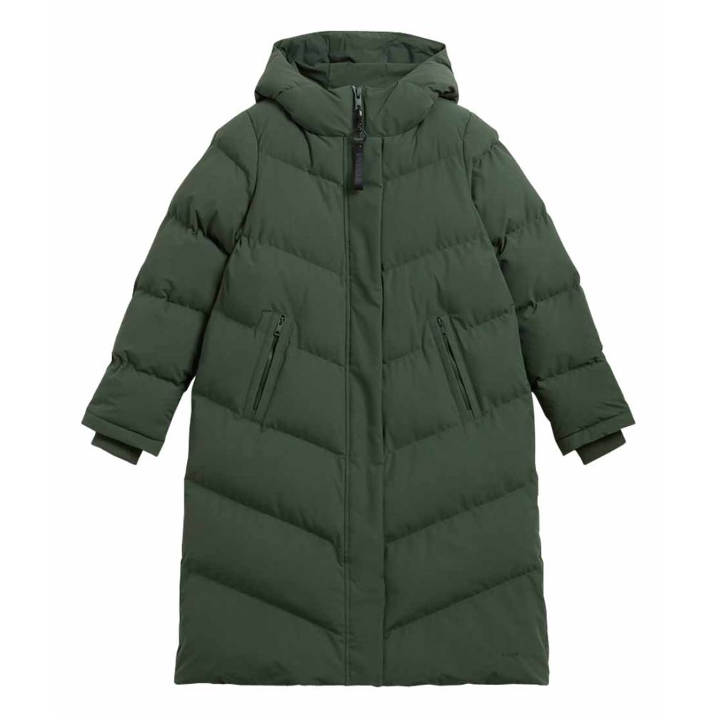 De Nalani winterjas van het merk Elvine heeft een oversized pasvorm en lange mouwen. De kleur van de jas is Juniper Green, met zwarte hardware voor een stijlvolle uitstraling. De jas is voorzien van een magneetsluiting en een tweewegritssluiting, waardoor je hem gemakkelijk kunt openen en sluiten. Daarnaast heeft de jas handige binnenzakken en zijzakken om je spullen veilig op te bergen.