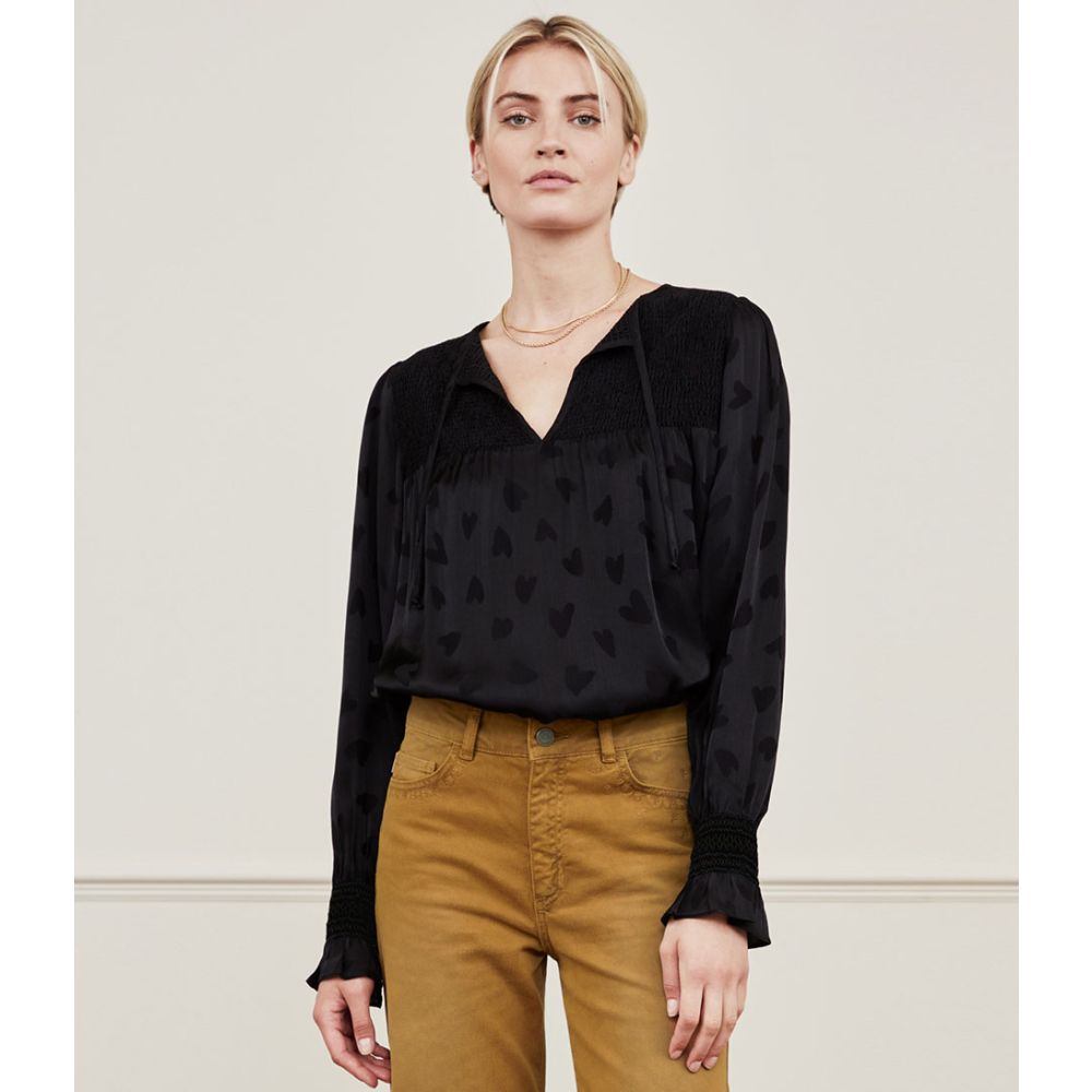 De Caro Top van Fabienne Chapot is een must-have voor dames die op zoek zijn naar een stijlvolle en trendy toevoeging aan hun garderobe. Met zijn lange mouwen en hartjespatroon is deze blouse perfect voor elke gelegenheid.