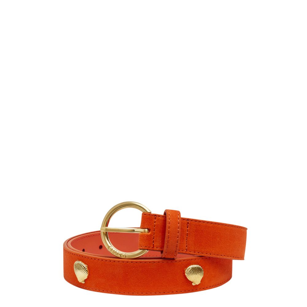 Fabienne Chapot Studded Shell Belt Leather Tangerine