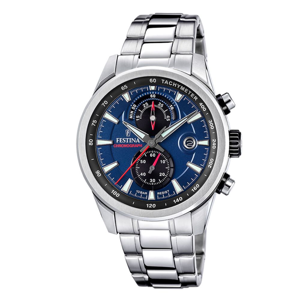 Maak kennis met de F20694/5 Timeless, een prachtig voor heren van het merk Festina. Dit tijdloze horloge heeft een zilverkleurige kast gemaakt van roestvrij staal, met een diameter van 44 mm en een dikte van 11 mm. De blauwe wijzerplaat geeft een stijlvolle en opvallende uitstraling aan dit horloge.