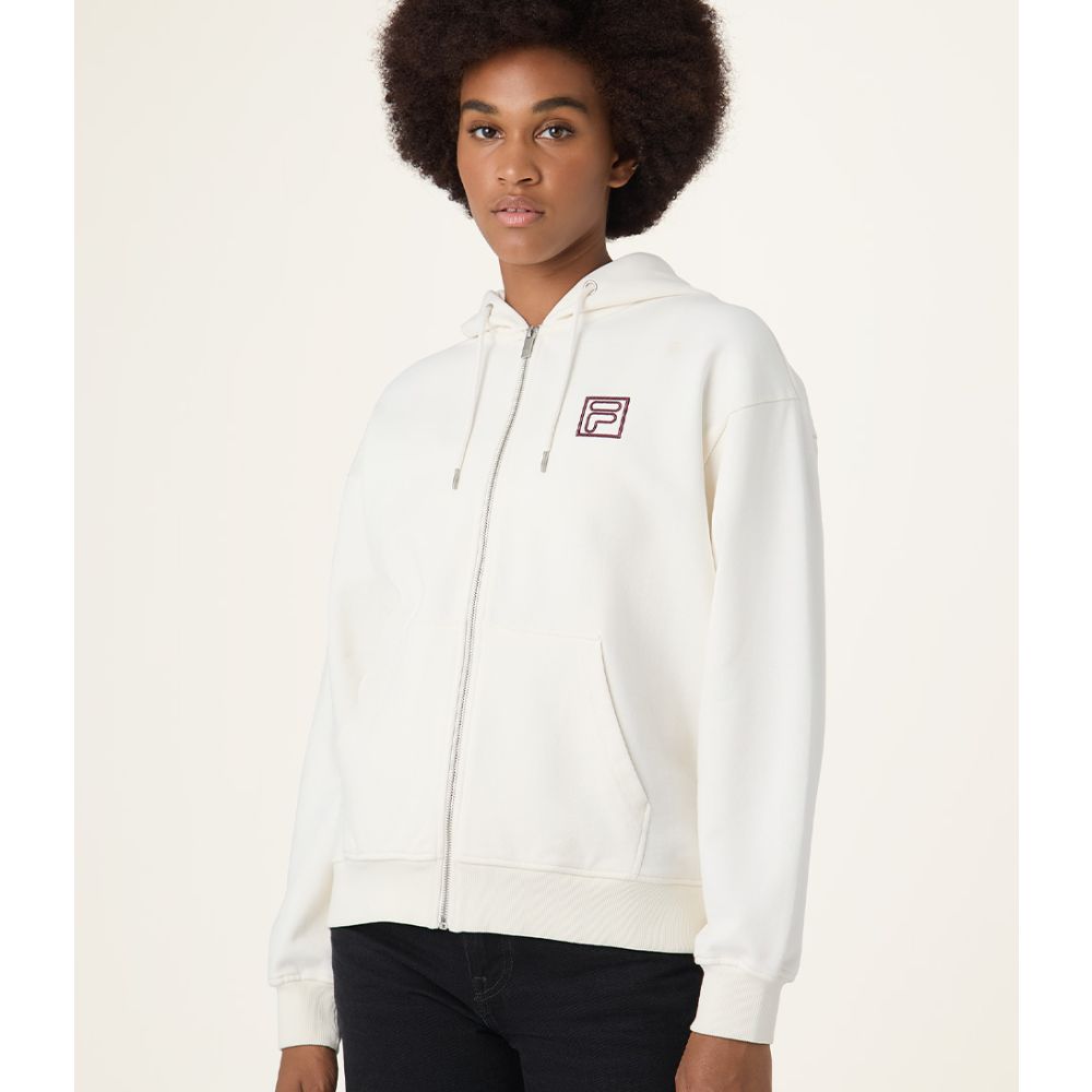 voor dames die stijl en comfort willen combineren. Deze trui met capuchon is niet alleen trendy, maar ook super praktisch voor de frisse dagen. Of je nu een wandeling maakt in het park of gewoon lekker thuis op de bank zit, de Lagrio houdt je warm en fashionable.Gemaakt van 100% katoen, voelt deze trui heerlijk zacht aan op je huid. De lange mouwen bieden extra warmte en de ritssluiting maakt het gemakkelijk om de trui aan en uit te trekken. De Egret kleur geeft een frisse uitstraling die moeiteloos te combineren is met je favoriete outfits. Of je nu gaat voor casual of een beetje chique, de Lagrio is jouw go-to keuze deze herfst en winter.