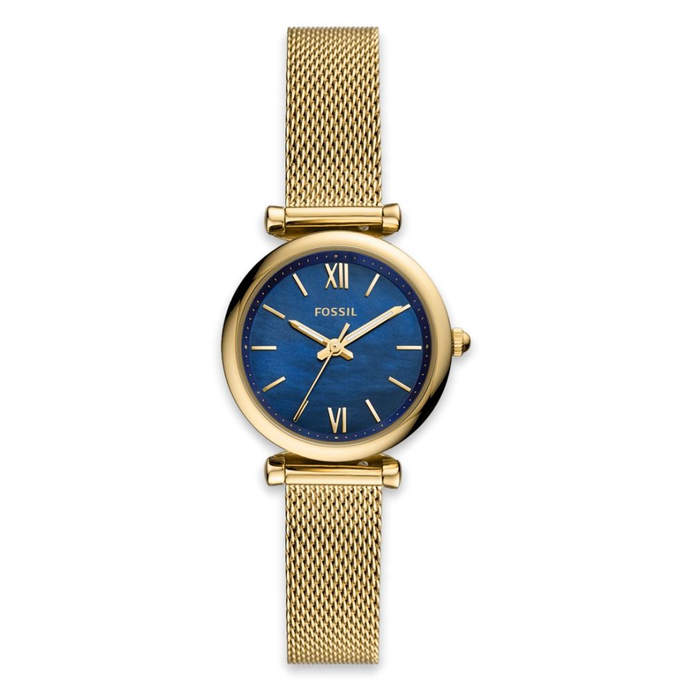 Ben je op zoek naar een stijlvol horloge dat perfect is voor dames? Dan is de Carlie Mini ES5020 van Fossil precies wat je nodig hebt. Dit prachtige analoge horloge heeft een kastdiameter van 28 mm en een kastdikte van 7 mm, waardoor het een subtiele en elegante uitstraling heeft. De goudkleurige kast en de blauwe wijzerplaat vormen een prachtige combinatie die direct in het oog springt.