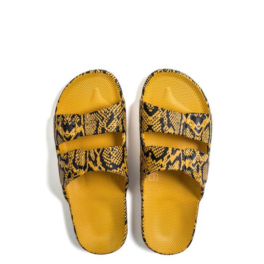 De zool van de Cobra Slides is gemaakt van duurzaam geïnjecteerd PCU, waardoor ze lang meegaan en bestand zijn tegen slijtage. Het merk Freedom Moses staat bekend om zijn hoogwaardige producten en de Cobra Slides zijn daar geen uitzondering op. De kleur van deze slippers is mikado, een unieke en trendy kleur die perfect past bij elke zomeroutfit.