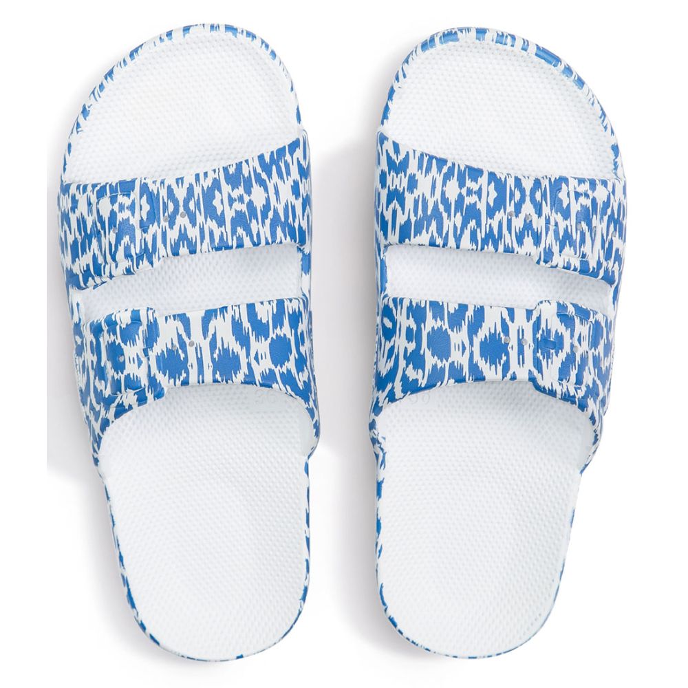Ben je op zoek naar comfortabele en stijlvolle slippers? Dan is de Ikat Blue van Freedom Moses perfect voor jou! Deze trendy slides zijn speciaal ontworpen voor dames die op zoek zijn naar een modieuze en duurzame keuze. Met een open neus en geen sluiting, bieden deze slippers ultiem gemak en comfort.