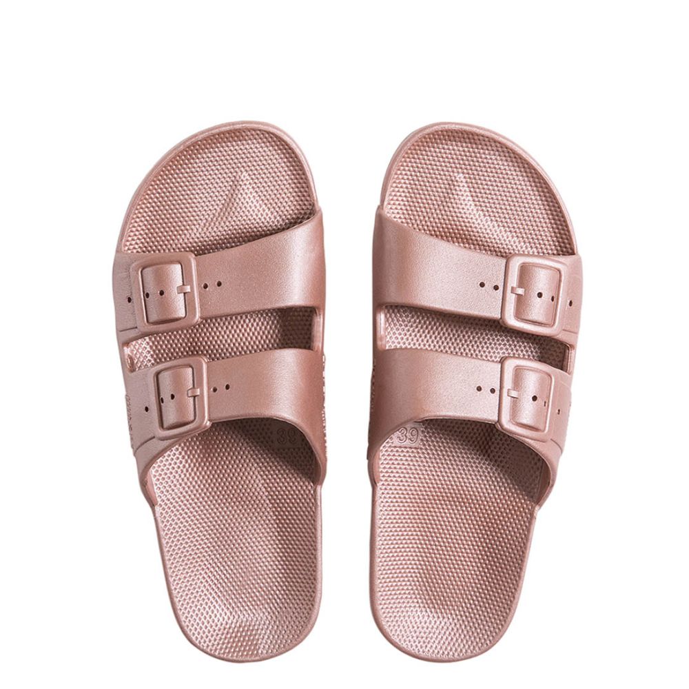 Wat deze slides echt bijzonder maakt, is het gebruik van gerecycled en vegan materiaal. Freedom Moses zorgt ervoor dat jouw kleintje niet alleen trendy is, maar ook bijdraagt aan een betere wereld. De zachte PCU-materialen zorgen voor een comfortabele pasvorm, zodat ze de hele dag kunnen rennen en spelen zonder zich zorgen te maken over hun voeten.