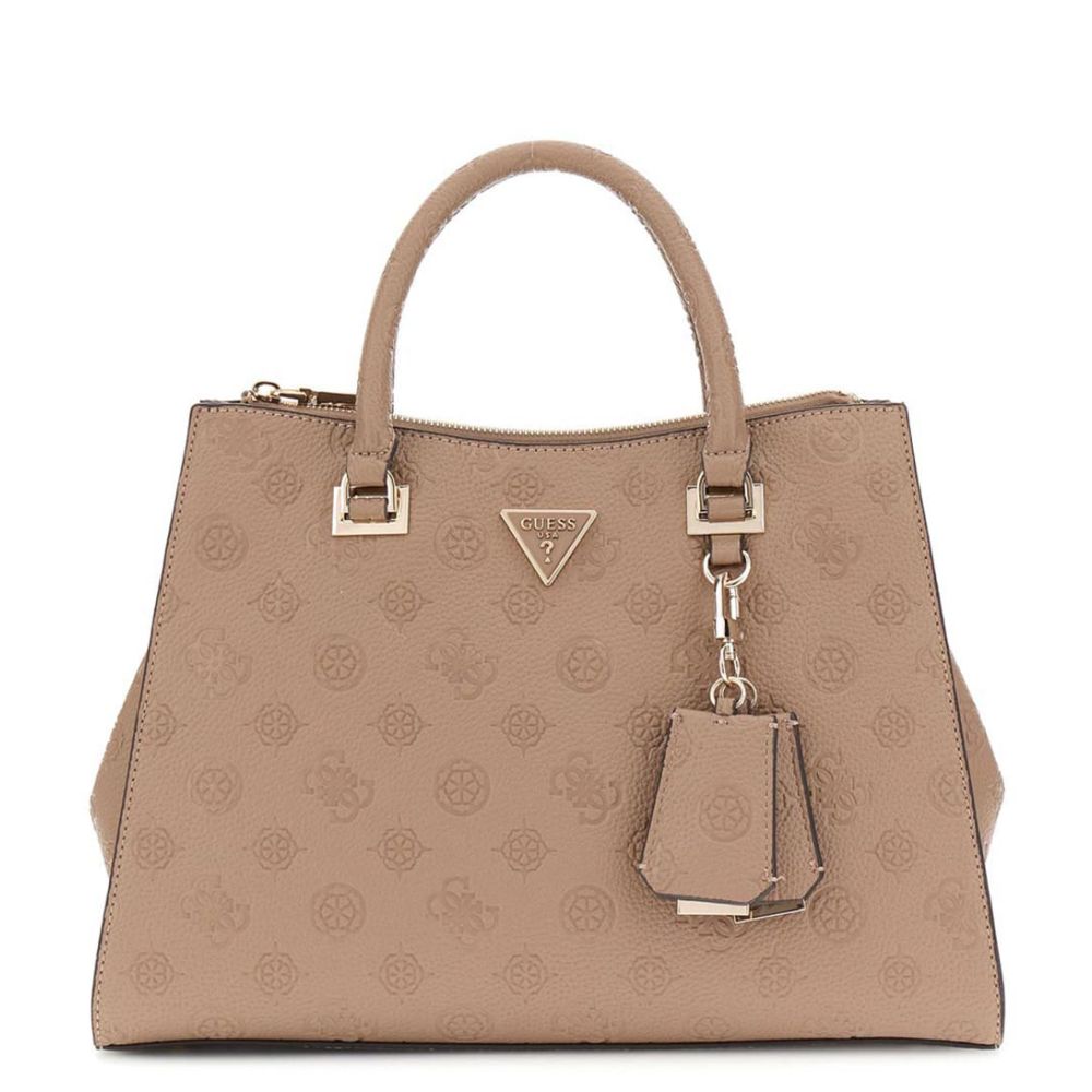 Guess Cresidia II Society Satchel Dark Taupe Logo