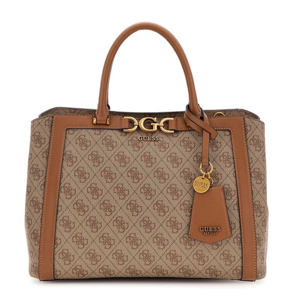 Guess Dagan Triple Compartiment Satchel Latte Logo