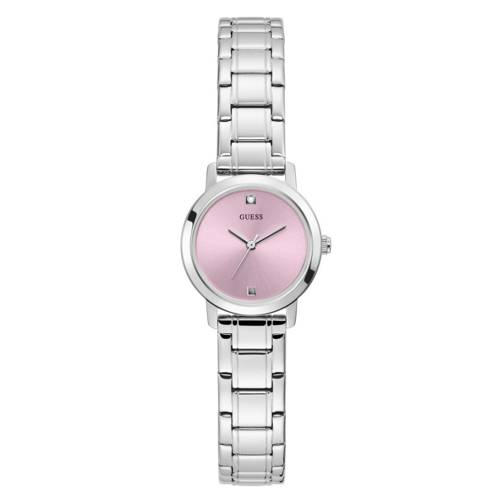 De roze wijzerplaat van dit horloge voegt een vleugje vrouwelijkheid toe, terwijl het gebruik van roestvrij staal als materiaal zorgt voor een hoogwaardige en duurzame constructie. Het horloge is van het bekende merk Guess en heeft de productcode GW0244L1.