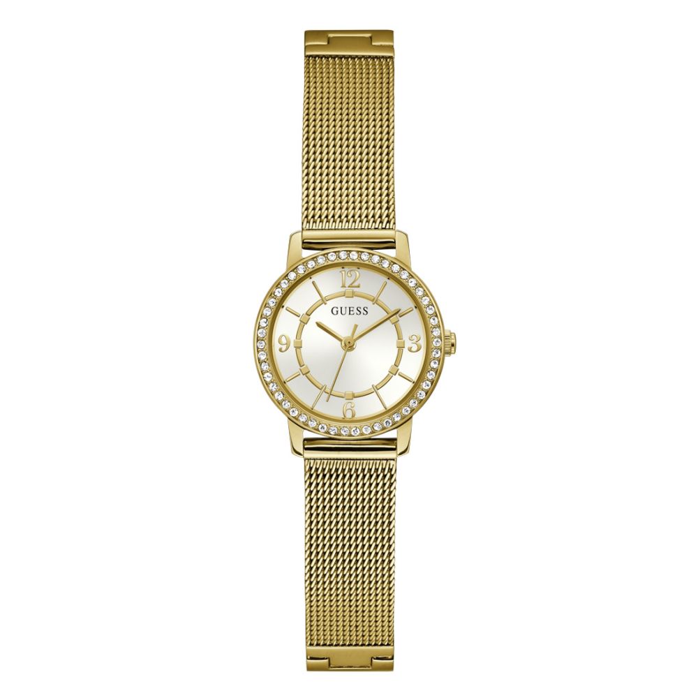 Ben je op zoek naar een stijlvol horloge dat perfect bij jouw outfit past? Dan is de Melody GW0534L2 van Guess een absolute must-have voor dames. Met een kastdiameter van 28 mm en een dikte van 8 mm is dit horloge elegant en subtiel. De goudkleurige kast geeft een luxe uitstraling, terwijl het zilverkleurige wijzerplaat een mooi contrast vormt. Het mineraalglas zorgt voor duurzaamheid en beschermt het horloge tegen krassen. Dankzij het quartz uurwerk ben je altijd verzekerd van een nauwkeurige tijdsaanduiding.