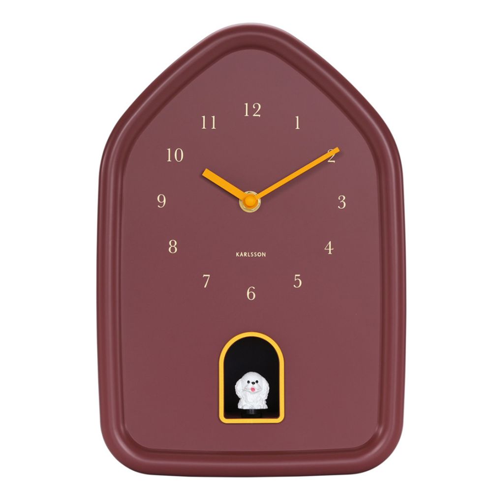 Karlsson Wall Clock Modern Doggy Burgundy Red