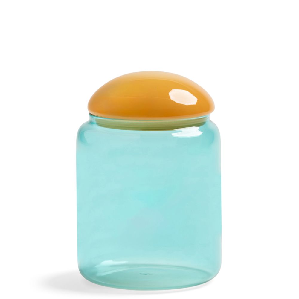 is niet alleen functioneel, maar ook een echte eyecatcher. Met een breedte en diepte van 12 cm en een hoogte van 17,5 cm past hij moeiteloos op elke plank of tafel.Gemaakt van hoogwaardig glas, straalt deze pot een moderne en frisse uitstraling uit. De multicolour afwerking geeft een speelse twist aan je decor, waardoor hij ideaal is voor volwassenen die houden van een vleugje kleur in hun leven. Of je nu je favoriete snacks, kruiden of andere kleine spulletjes wilt opbergen, de Jar Puffy Turquoise doet het met flair!