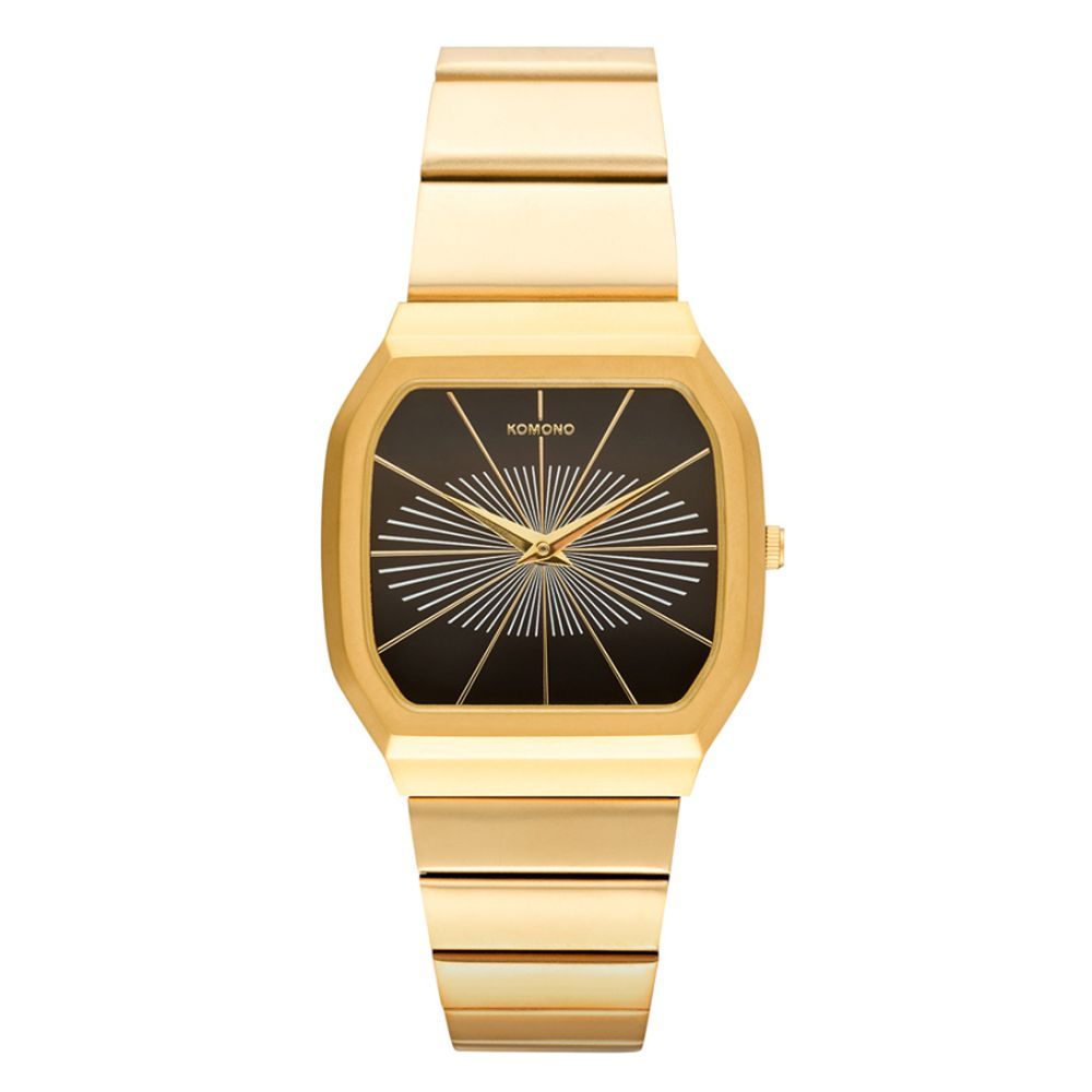 Maak kennis met de Max Orion, de perfecte aanvulling voor elke volwassen stijlbewuste man of vrouw. Dit KOMONO is niet alleen een tijdmeter, maar ook een statement piece dat je outfit naar een hoger niveau tilt. Met een elegante vierkante kast van goudkleurig roestvrij staal en een strakke zwarte wijzerplaat, straalt dit horloge luxe en verfijning uit.