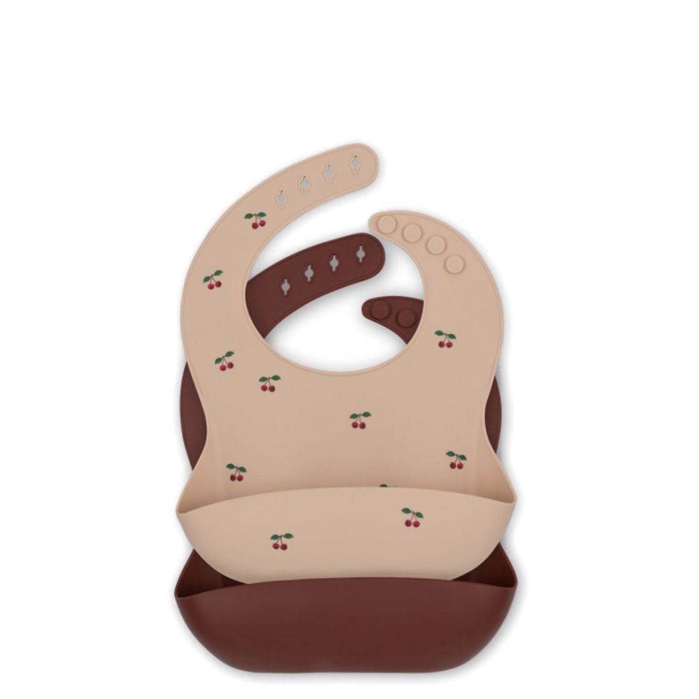 Konges Slojd 2 Pack Silicone Bib Cherry/Mocca