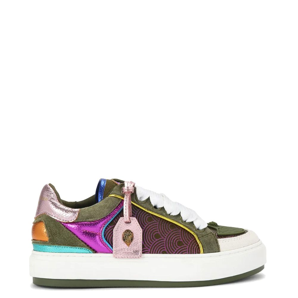 De Southbank Tag Lage Sneakers zijn ontworpen door het bekende merk Kurt Geiger, dat bekend staat om zijn trendy en kwalitatieve schoenen. Met deze sneakers ben je verzekerd van een modieuze uitstraling. Ze zijn perfect voor de lente/zomer seizoenscollectie, omdat ze een frisse en luchtige look hebben. De sneakers hebben een vetersluiting, waardoor je ze gemakkelijk kunt aanpassen aan je eigen pasvorm. De ronde neus geeft de sneakers een klassieke en tijdloze uitstraling.