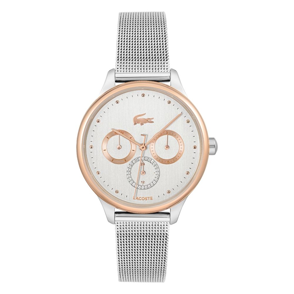Ben je op zoek naar een stijlvol horloge dat perfect is voor dames? Dan is de Birdie LC2001204 van Lacoste echt iets voor jou. Dit prachtige horloge behoort tot de categorie Analoge horloges en heeft een diameter van 36 mm en een dikte van 9 mm. De roségoudkleurige kast geeft het horloge een elegante uitstraling, terwijl het zilverkleurige wijzerplaat een tijdloze charme toevoegt.