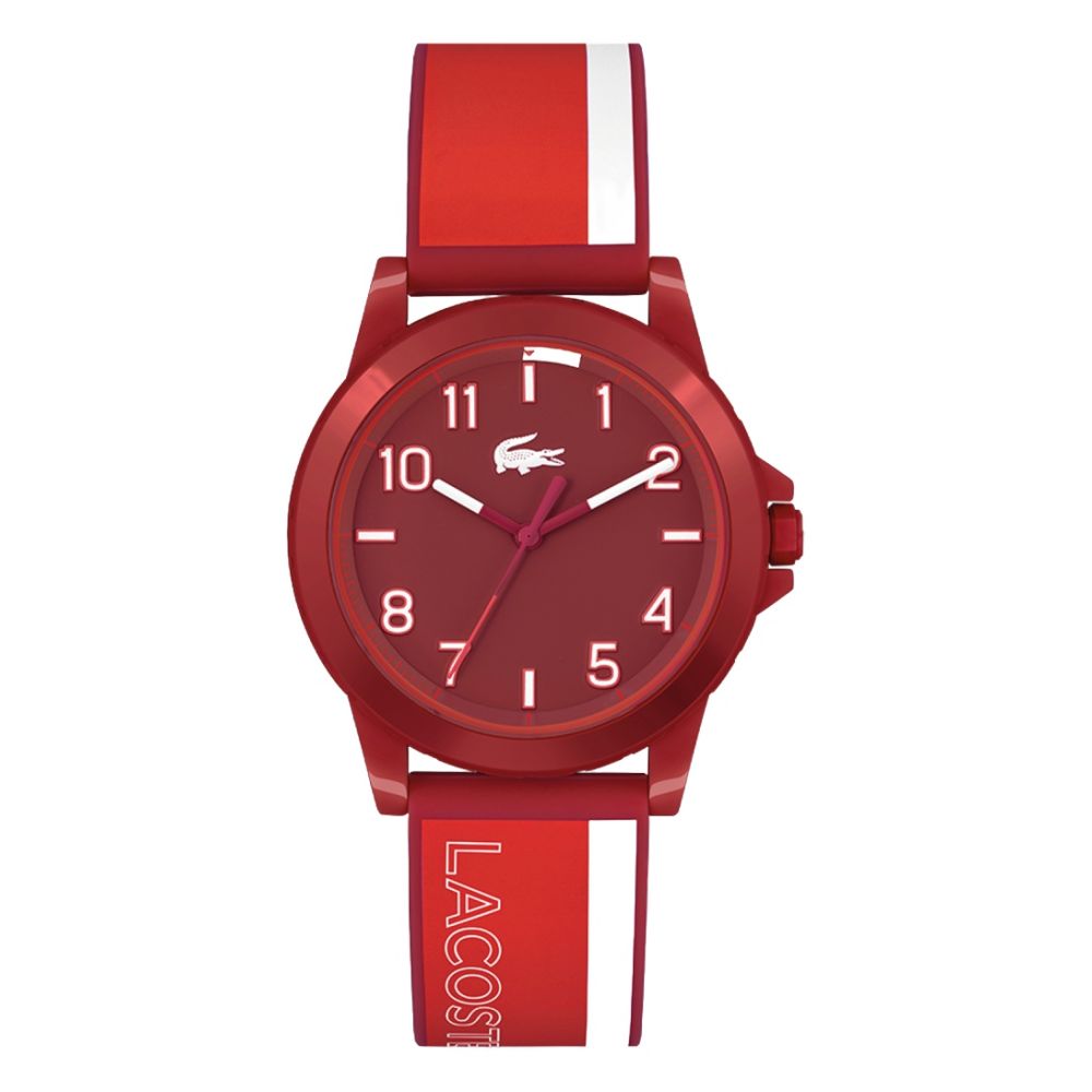 Ben je op zoek naar een stijlvol horloge voor kinderen? Dan is de Rider LC2030047 van Lacoste echt iets voor jou. Dit analoge horloge heeft een opvallende rode kleur, waardoor het direct de aandacht trekt. Met een kastdiameter van 36 mm en een dikte van 10 mm heeft dit horloge een comfortabele pasvorm. Het mineraalglas zorgt voor een heldere en krasbestendige wijzerplaat, terwijl het quartz uurwerk zorgt voor nauwkeurige tijdmeting. Bovendien is dit horloge waterbestendig tot 5 ATM, waardoor het geschikt is voor dagelijks gebruik. De rode wijzerplaat en de siliconen band passen perfect bij de rode kleur van het merk Lacoste. Met de gesp als sluiting en de ronde vorm is dit horloge niet alleen trendy, maar ook praktisch in gebruik. Bestel nu de Rider LC2030047 en maak een statement met dit Lacoste horloge!