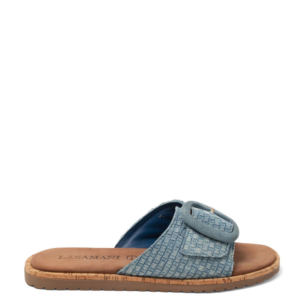 Lazamani Round Buckle Denim Mules Denim