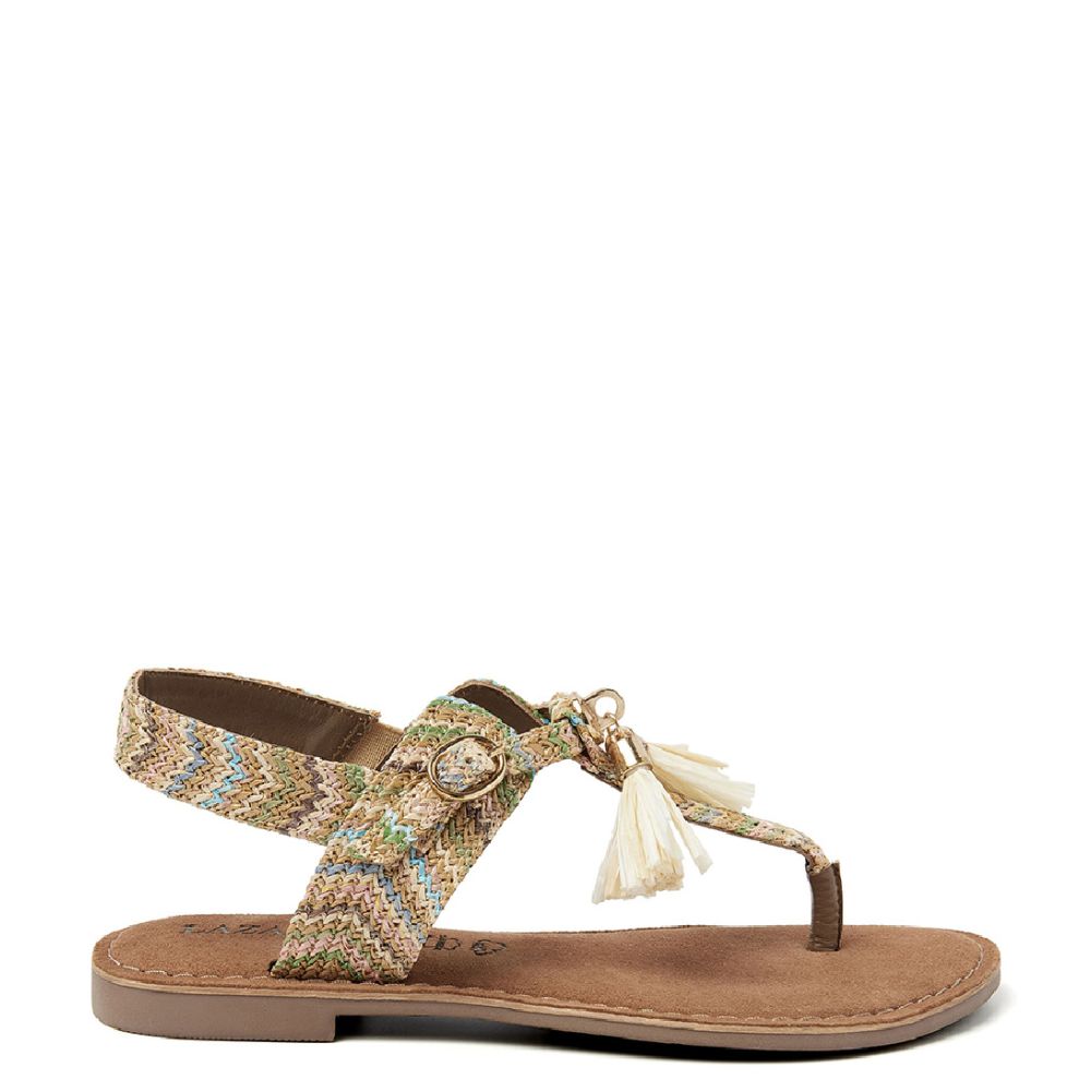 Lazamani Toe Sandals Tassels Jute Beige
