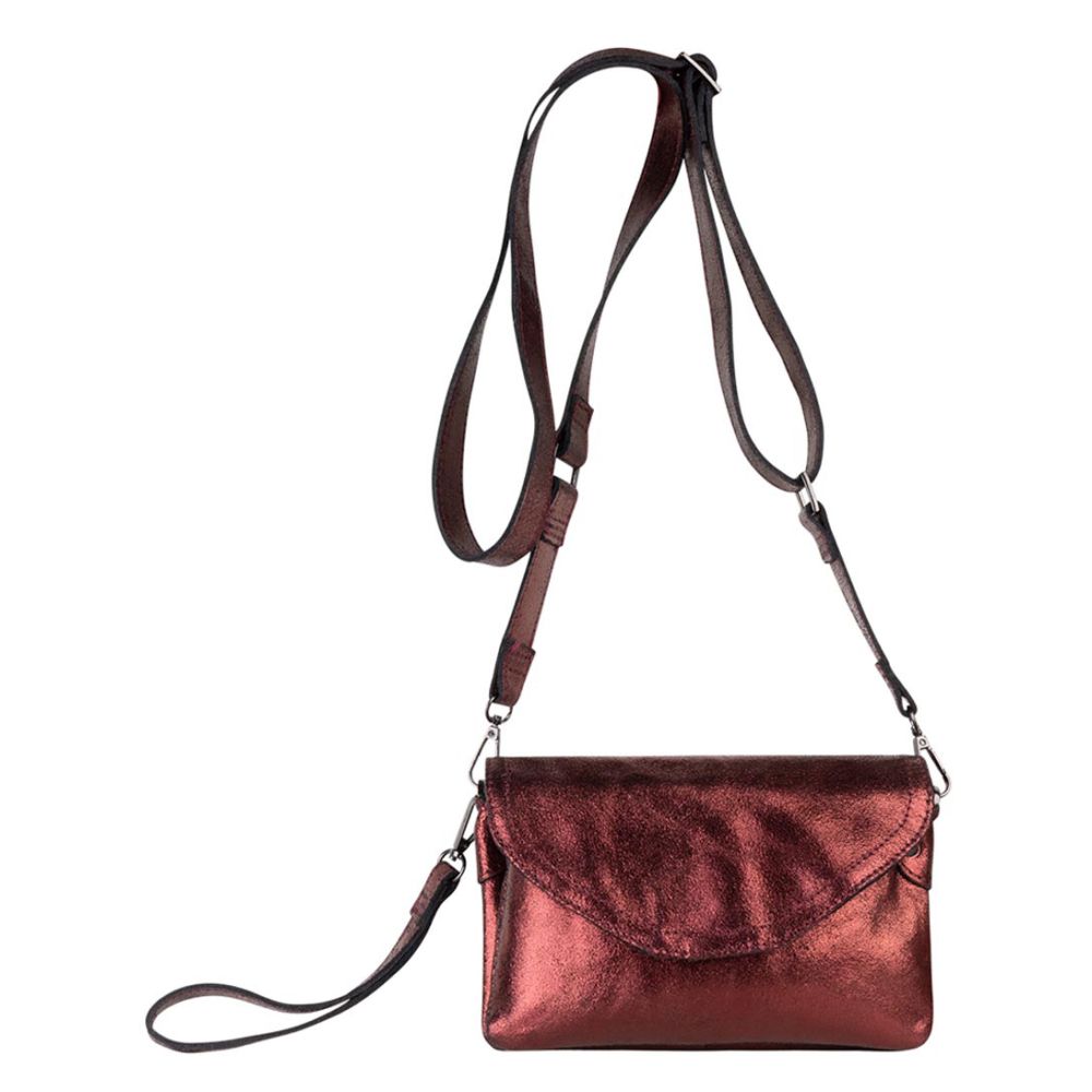 Met zijn opvallende metallic rode kleur is de Debra clutch een echte eyecatcher. Voeg een vleugje glamour toe aan je outfit en maak een statement met deze prachtige clutch van Legend.