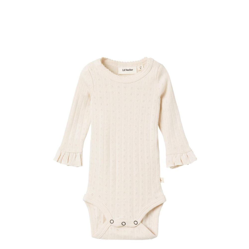 Ben je op zoek naar een schattig en comfortabel Lil Atelier en heeft de kleurnaam "Whitecap Gray". Met de lange mouwen is je baby beschermd tegen koude temperaturen en het effen patroon geeft een stijlvolle uitstraling.