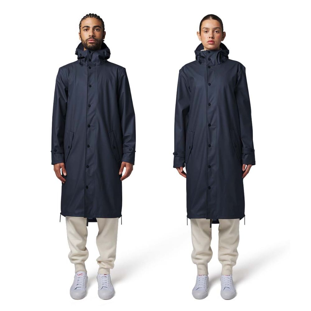 De capuchon en de verstelbare manchetten zorgen ervoor dat je altijd beschermd bent tegen de regen. De lange mouwen en de regular pasvorm zorgen voor een comfortabele en stijlvolle look. De zwarte kleur hardware en de navy kleurnaam van het merk Maium geven deze regenjas een moderne uitstraling.