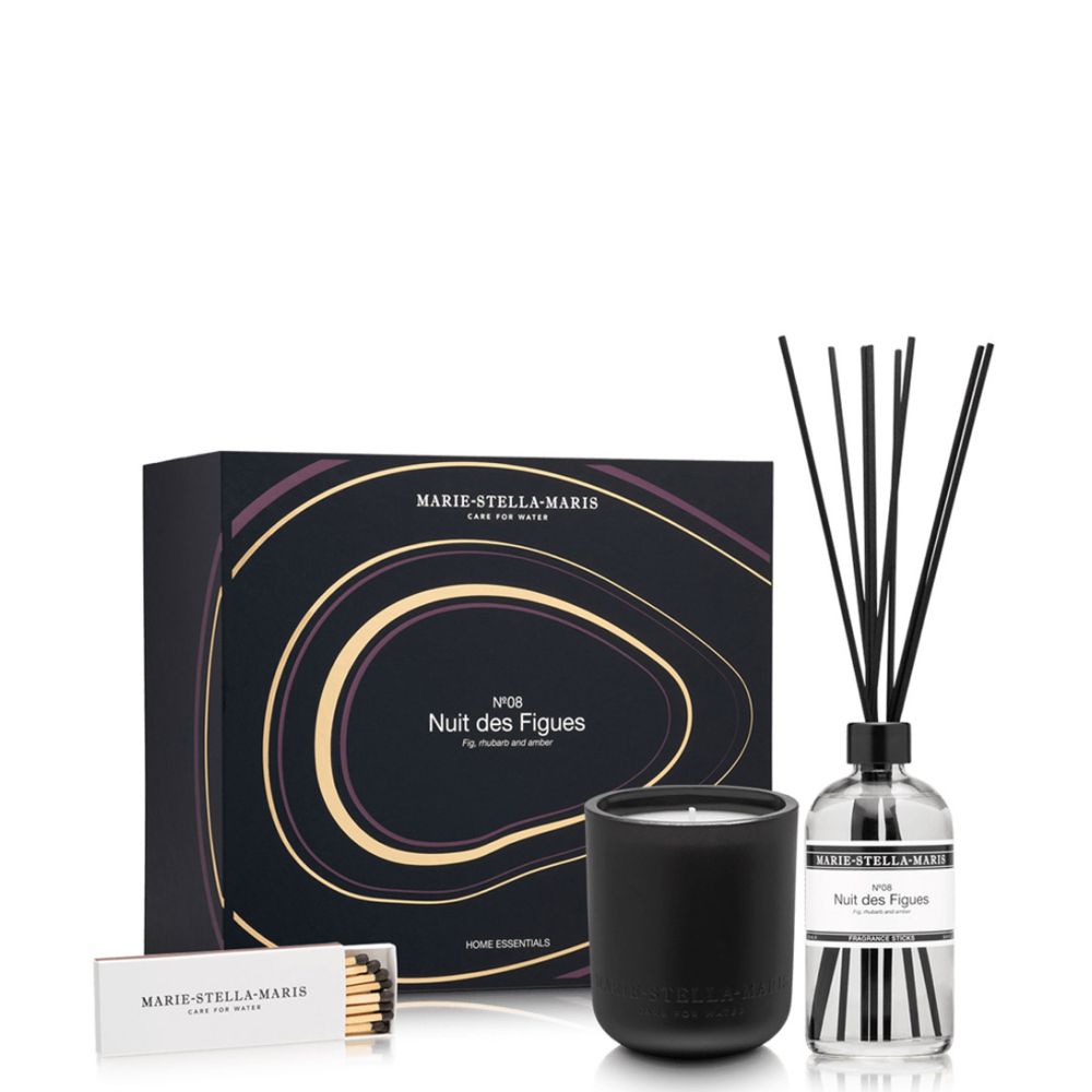 De Home Essentials Nuit des Figues 2023 geurstokjes zijn gemaakt van gerecycled glas en was, waardoor ze niet alleen heerlijk ruiken, maar ook bijdragen aan een duurzamere wereld. Het transparante design van het glas en de subtiele branding van Marie-Stella-Maris geven deze geurstokjes een stijlvolle uitstraling die perfect past bij elk interieur.