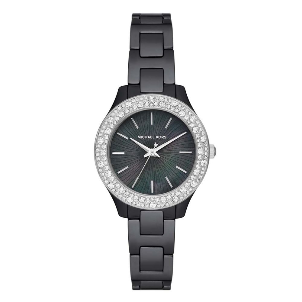 Maak kennis met Liliane, een prachtig Michael Kors. Met een kastdiameter van 33 mm en een dikte van 9 mm is dit horloge elegant en verfijnd. De zwarte kleur van de horlogekast en de wijzerplaat geeft een tijdloze uitstraling, terwijl het mineraalglas zorgt voor duurzaamheid en krasbestendigheid.