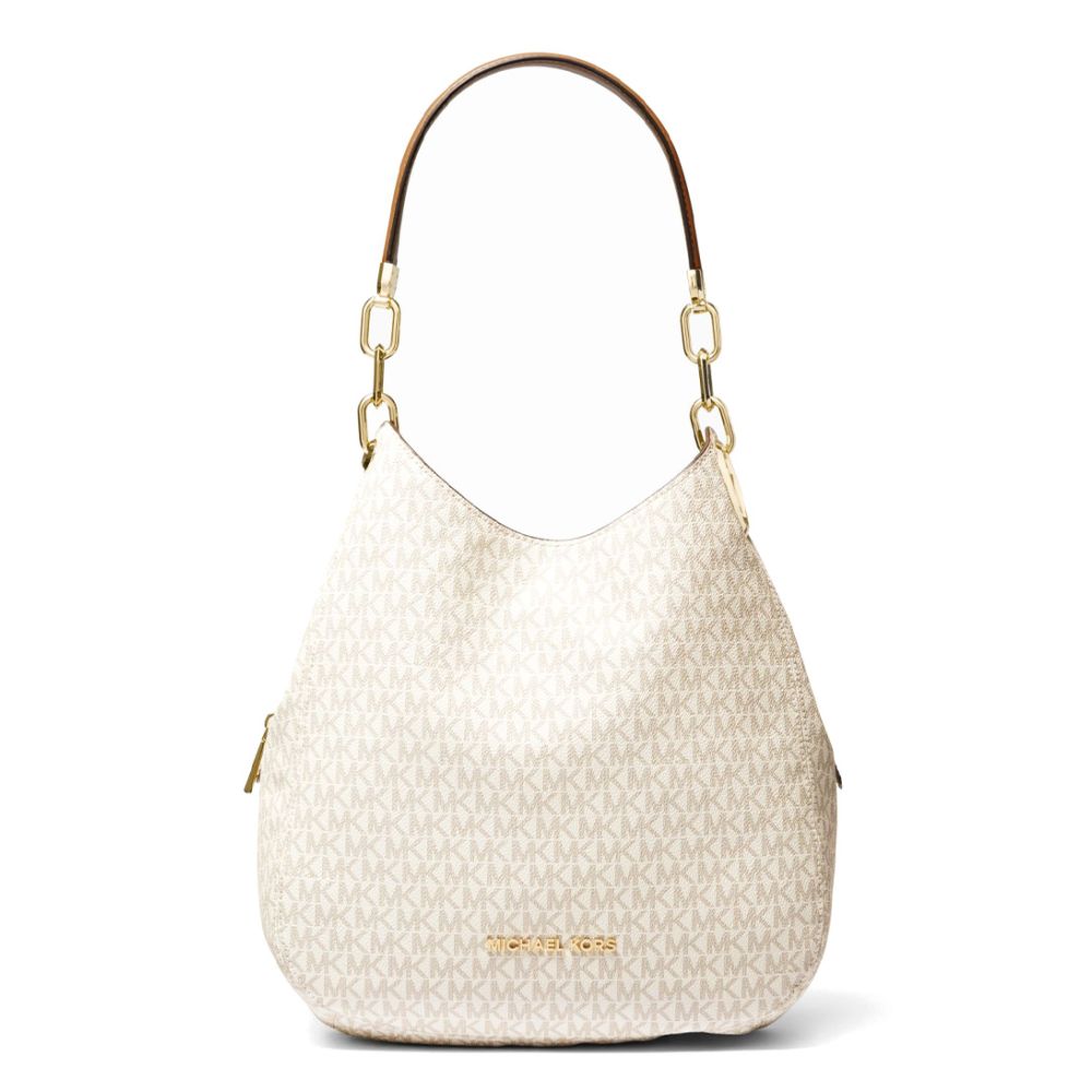 Michael Kors Lillie Large Chain Shoulder Tote vanilla acorn & gold colored hardware