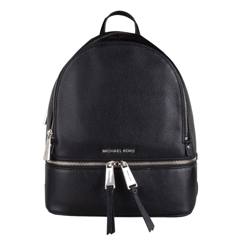 Michael Kors Rhea Medium Leather Backpack black & silver colored hardware