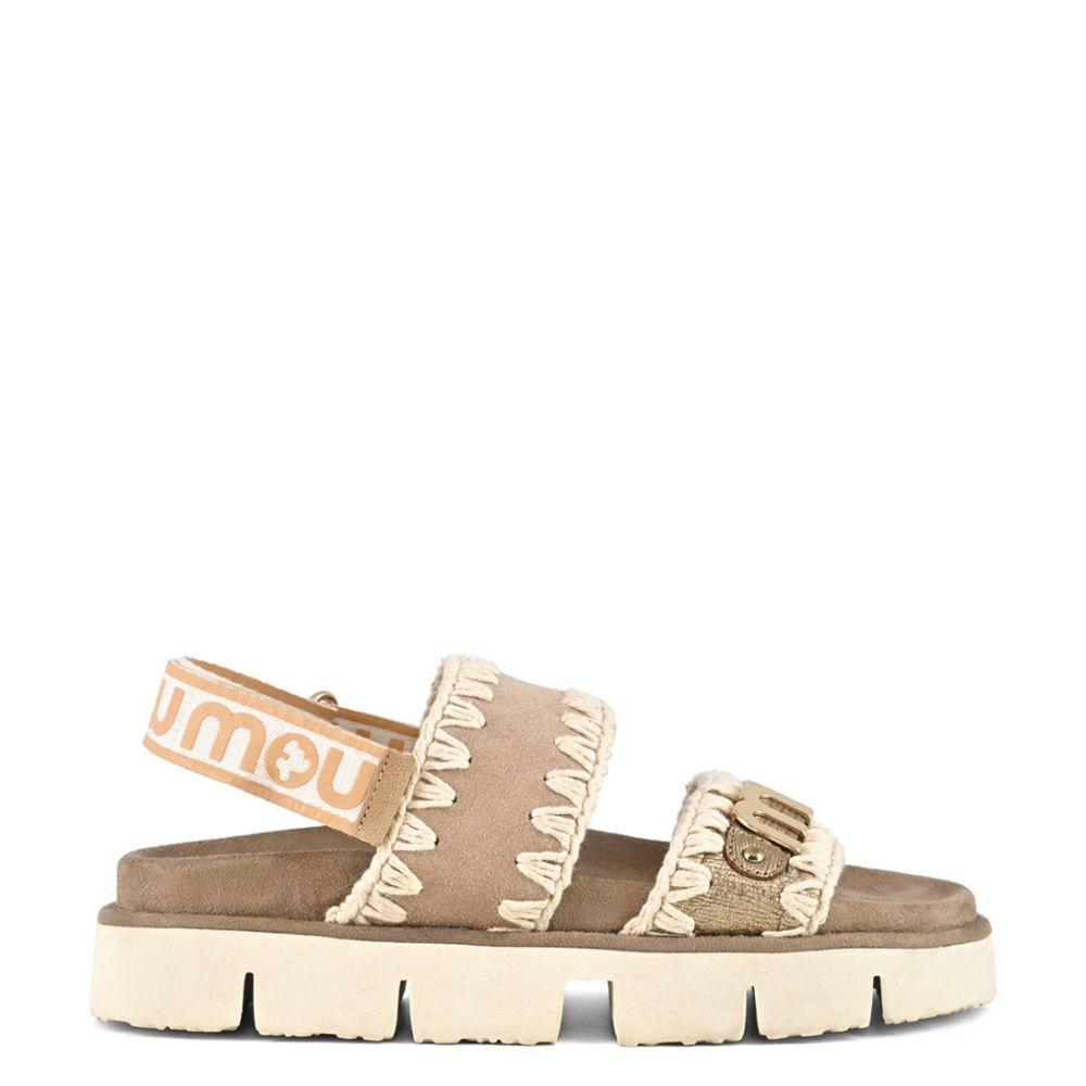 Mou Bio Sandal Suede Leather Metallic Lizard Gold