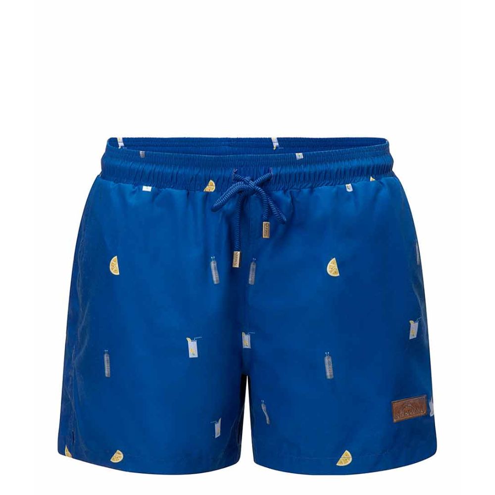 In een opvallende blauwe kleur met een uniek drinkpatroon, zal Bobby's zeker de aandacht trekken op het strand of bij het zwembad. De taillehoogte is middelhoog en de zwembroek sluit met een handig trekkoord.