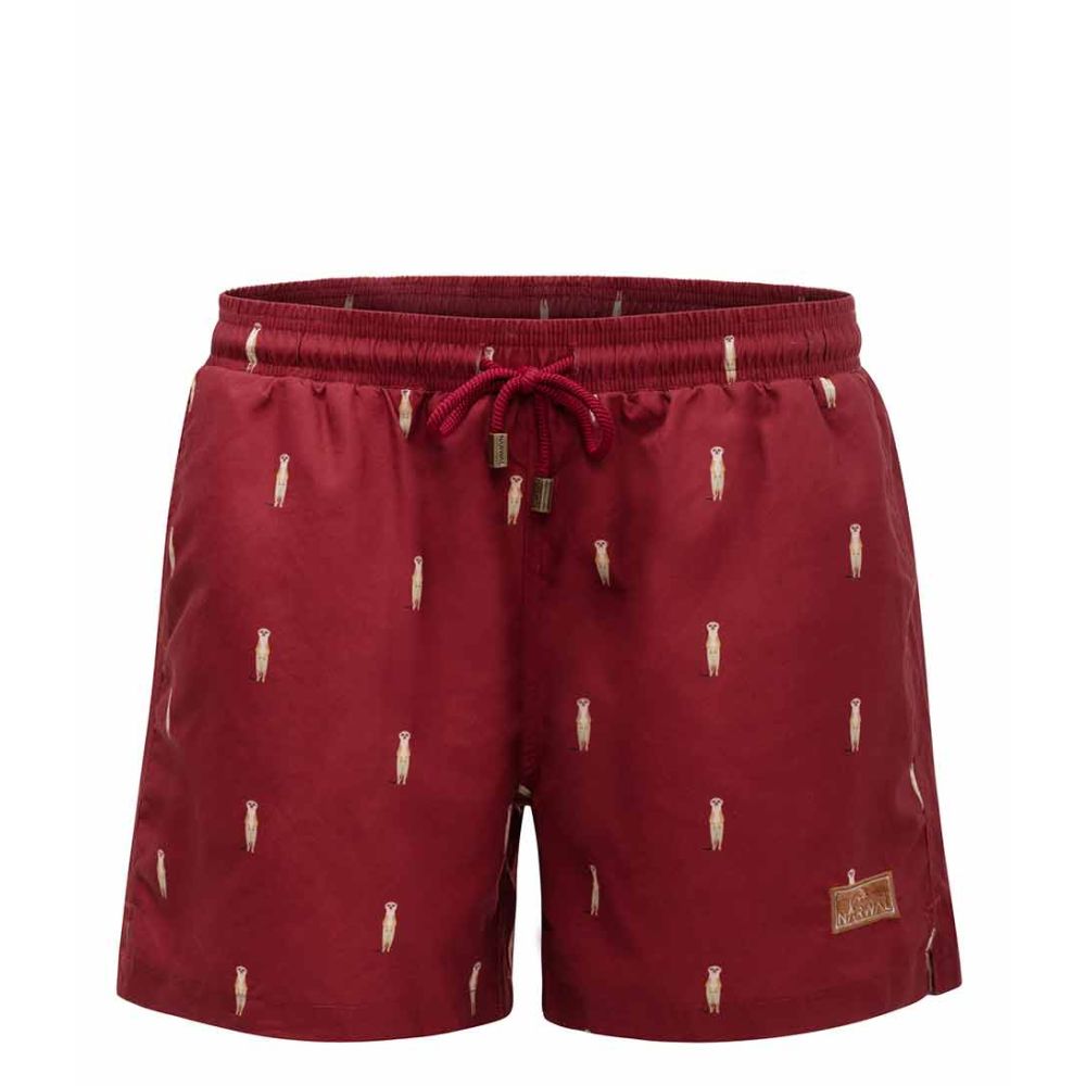 voor heren is een must-have voor de zomer. Met zijn korte broeklengte en middelhoge taillehoogte biedt deze zwembroek een comfortabele pasvorm. Gemaakt van gerecycled PET-materiaal, draagt deze zwembroek bij aan duurzaamheid en is hij goedgekeurd volgens de Global Recycled Standard (GRS). De opvallende rode kleur met dierenprint geeft een trendy en speelse uitstraling.De Meerkat zwembroek is gemakkelijk te onderhouden. Was hem gewoon op 30 graden en strijk hem indien nodig op maximaal 110 graden. Let op: deze zwembroek is niet geschikt voor de droger. Met de trekkoordsluiting kun je de pasvorm naar wens aanpassen.