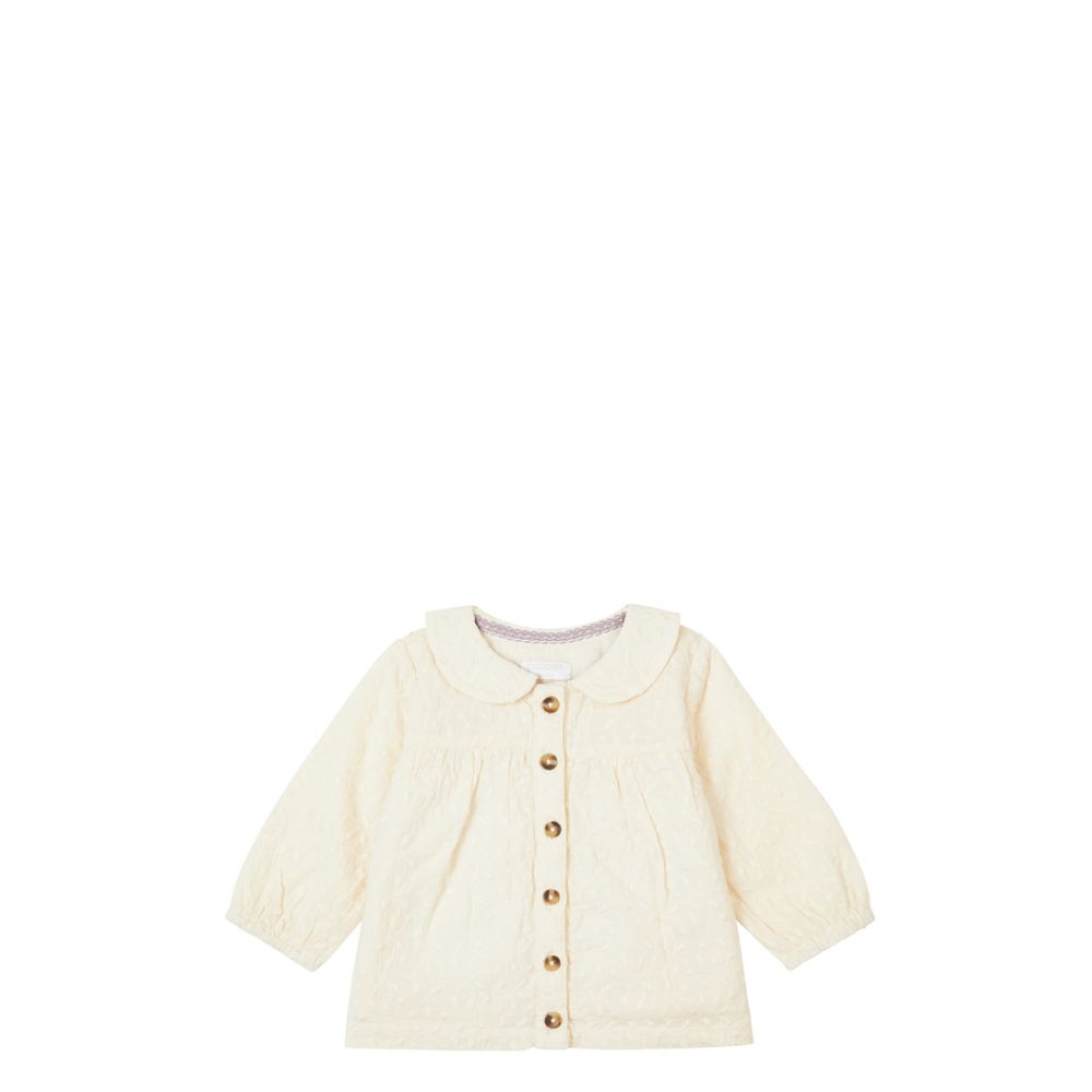 Gemaakt van 100% katoen, voelt de blouse zacht aan op de huid van je baby en zorgt het voor een ademende en comfortabele pasvorm. De knoopsluiting maakt het aankleden een fluitje van een cent, zodat je snel en gemakkelijk je kleintje kunt kleden voor een dag vol avontuur. De buttercream kleur geeft een frisse en vrolijke uitstraling, perfect voor de herfst en winter.