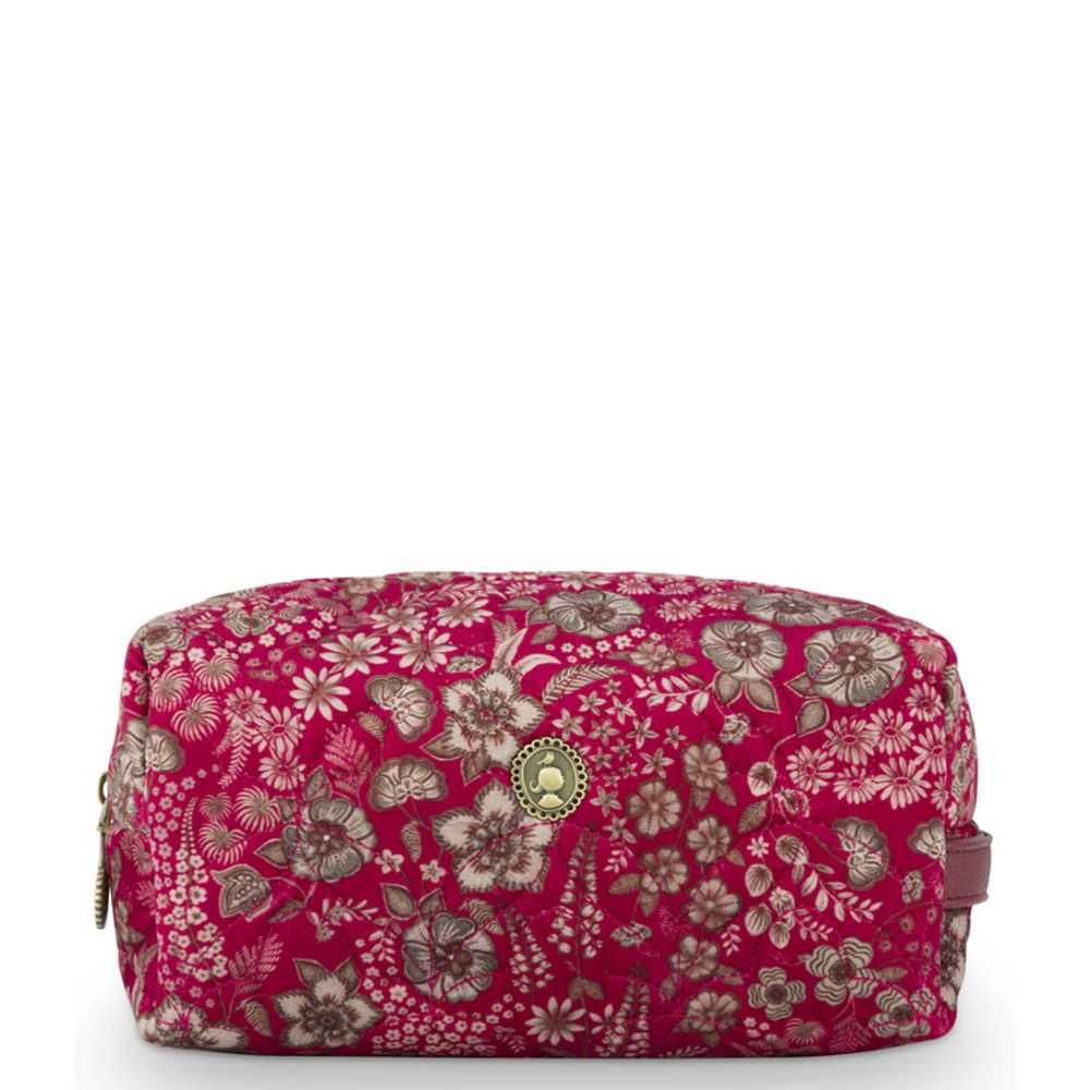 Maak kennis met de Coco Cosmetic Bag Medium Quilted Daisy Dreams van Pip Studio, jouw nieuwe beste vriend als het gaat om stijl en functionaliteit. Deze is niet alleen een lust voor het oog met zijn prachtige rode velvet en gouden hardware, maar ook super praktisch. Met een breedte van 21.5 cm, diepte van 10 cm en hoogte van 10.5 cm, biedt hij genoeg ruimte voor al je beauty essentials zonder dat je inlevert op stijl.