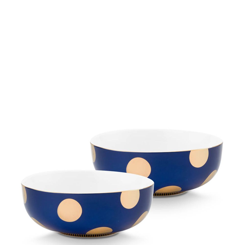 Pip Studio Set of 2 Bowls Dot Delight 15cm Navy Gold