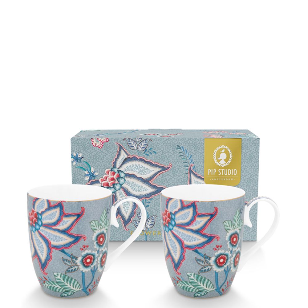 Pip Studio Set of 2 Mugs Large Flower Festival Light Blue